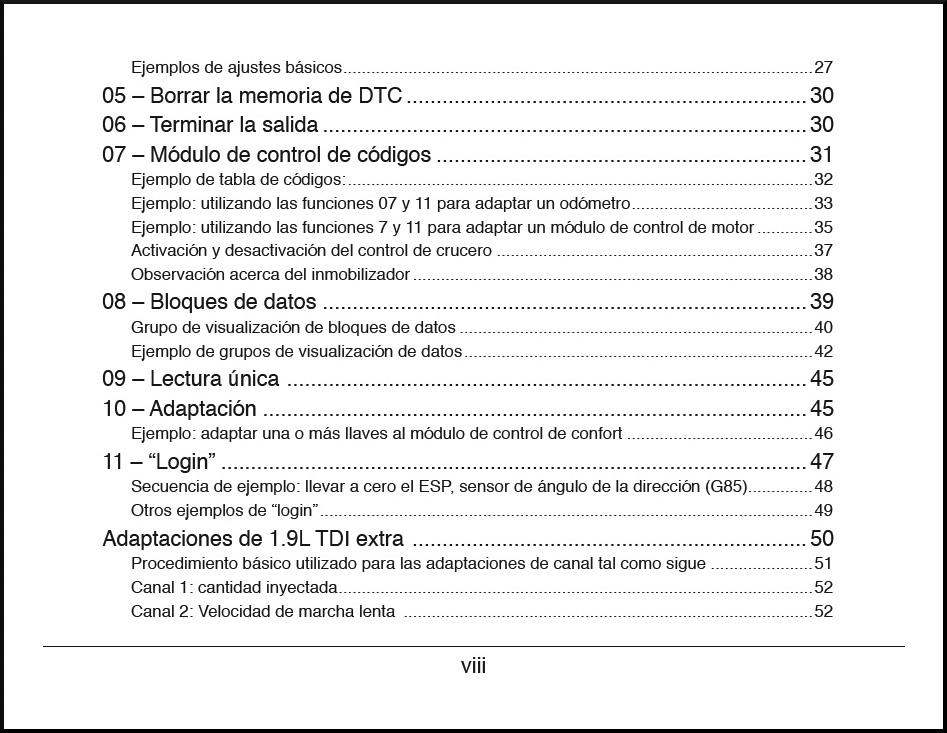 - Nuestro manual comprensivo de los datos y el material de referencia que usted usara una y otra vez cuando haga reparaciones en los autos de sus clients. Nuestro manual de datos contiene codigos de disposicion, bloques de valor medido y prueba de conduccion para la mayoria de los modelos de VW y Audi vendidos entre 1997 y 2006.